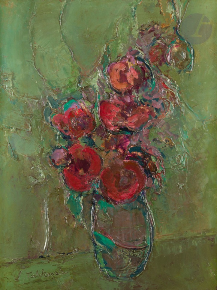Lot 45. Vladimir TERLIKOWSKI (1873-1951). Bouquet of flowers. Oil on canvas. Signed lower left. 65 x 50 cm. Estimate 1,500 – 2,000 euro. Ader. 03/18/25. Sold 1,600 euro
