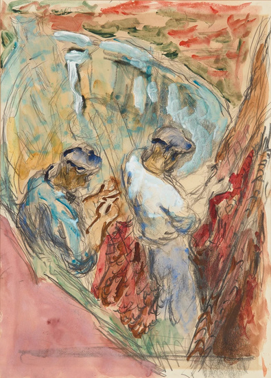 Lot 186. Henryk Gotlib, Polish/British 1892-1966. Fishermen mending nets; watercolour and pencil on paper, 34.2 x 24.7 cm (ARR). Provenance: the Estate of the Artist, no.317. Estimate 300 – 500 GBP. Sold 900 GBP