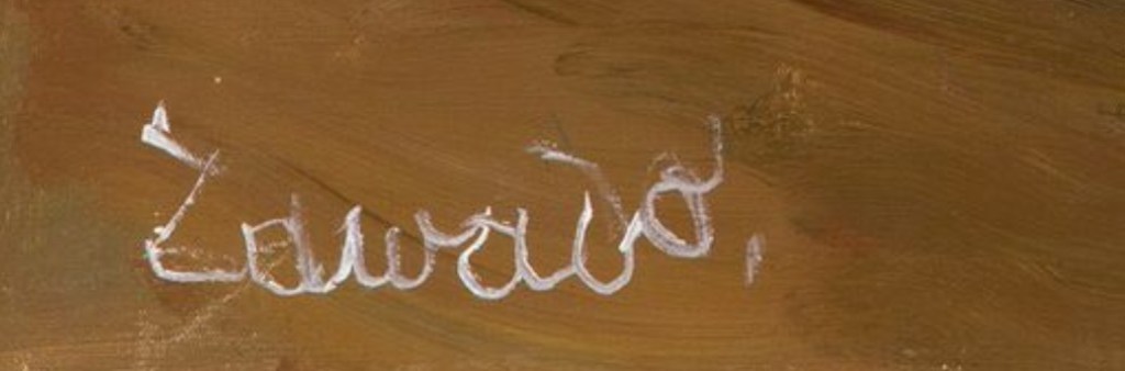 Ten wymieniony obraz dużego formatu na który powołuje się Desa, lecz bez pokazania fotografii, to Sous les remparts de Marrakech i przedstawiam jako #3. W 2023 obraz ten sprzedany został w Christie’s za 28,000 GBP (ok 140,000 PLN). Obecnie #2, wyglądający na zminaturyzowaną kopię obrazu #3 Desa wyceniła aż na 80,000 PLN lecz go nie sprzedała. Trzeba dodać, że obraz Adama Styki z Christie’s miał niepodważalną proweniencję, począwszy od wystawy w 1920 roku, po sprzedaż w USA a potem sprzedaż w Christie’s-UK. Obraz z Desy nie miał żadnej proweniencji i wygląda na zmiejszoną kopię o innej tonacji barw. Wątpię by była to kopia autorska. Adam Styka, wg podanego na płótnie datowania miałby wykonać ten mały obraz w Polsce w przedziale aż 6 lat (1938-44), włączywszy w to oczywiście okres okupacji niemieckiej i tragicznej śmierci jednego z synów, roztsrzelanego przez Niemców. By wykonać tak dokładną kopię powinien mieć obraz przez oczami lub przynajmniej dobrą jego fotografię. Ciągle coś zakładamy nie mając dowodów – pełno jest tutaj katalogowego wishfull thinking. Warto zwrócić uwagę, że ramka w której zamknięta jest sygnatura została namalowana niepewnie wijącą się linią. Zwykle, zamykała w pewny sposób imię i nazwisko.
