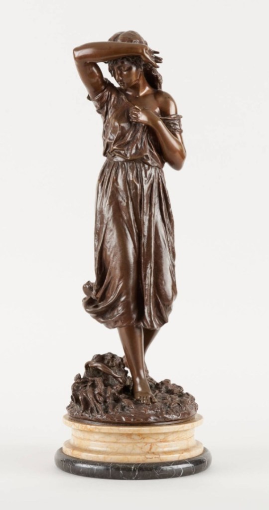 Lot 177. Wladislaw MARCINKOWSKI Polish school (1858-1947). Brown patina bronze sculpture: Zosia. Signed and dated: Marcinkowski 1883. (on marble base). Size: H.: excluding base 46.5 cm. Estimate 3,000 – 4,000 euro. Horta. 04/21/25. Passed