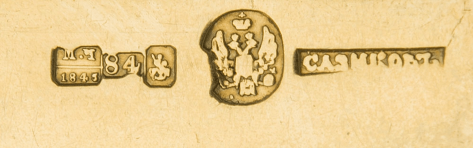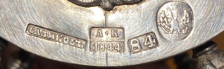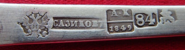 Punca z nazwiskiem Sazikowa zawiera ten sam błąd, którym jest na końcu litera wyglądająca na ‘L’ zamiast znaku miękkiego ‘ъ‘. Nie jest to niedobicie puncy, czy defekt puncy lecz ten falsyfikat puncy jest rezultatem niezrozumienia języka i alfabetu rosyjskiego. Te trzy obiekty mają położone jedynie cztery punce a brakuje im koniecznej puncy miast w którym obiekty zostałyby wykonane tj. puncy miasta Moskwy. Punca miasta Moskwy z tamtego okresu to św, Jerzy na koniu z lancą. Duża punca przedstawiająca imeprialnego rosyjskiego dwugłowego orła (Sazikow miał patent na dostawę wyrobów na dwór carski i stąd ta duża punca orła rosyjskiego) również wygląda niewyraźnie i słabo porównując z puncą z tamtego okresu. W sumie mamy epokowe odkrycie: aż trzy kałamarze Sazikowa na rynkach, każdy wykonany w 1844 roku! Szansa na takie spotkanie się trzech identycznych wyrobów jest mniejsza od wygranej w lotka. Przestrzegam zatem przez kupowaniem sreber, polskich i rosyjskich, na szarym rynku. Warto pytać w renomowanych sklepach internetowych, warto poczytać i zastanowić się skąd taki wysyp sreber głównie z zaboru rosyjskiego. Niech szlag trafi tych fałszerzy! Jedyna obroną jest wiedza.