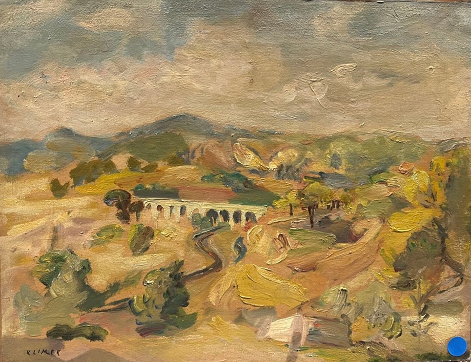 Lot 219. Ludwig KLIMEK (1912-1992). Landscape with bridge. Oil on cardboard. Signed lower left. 27 x 30 cm. Estimate €200 -300. Oxio. 09/19/25