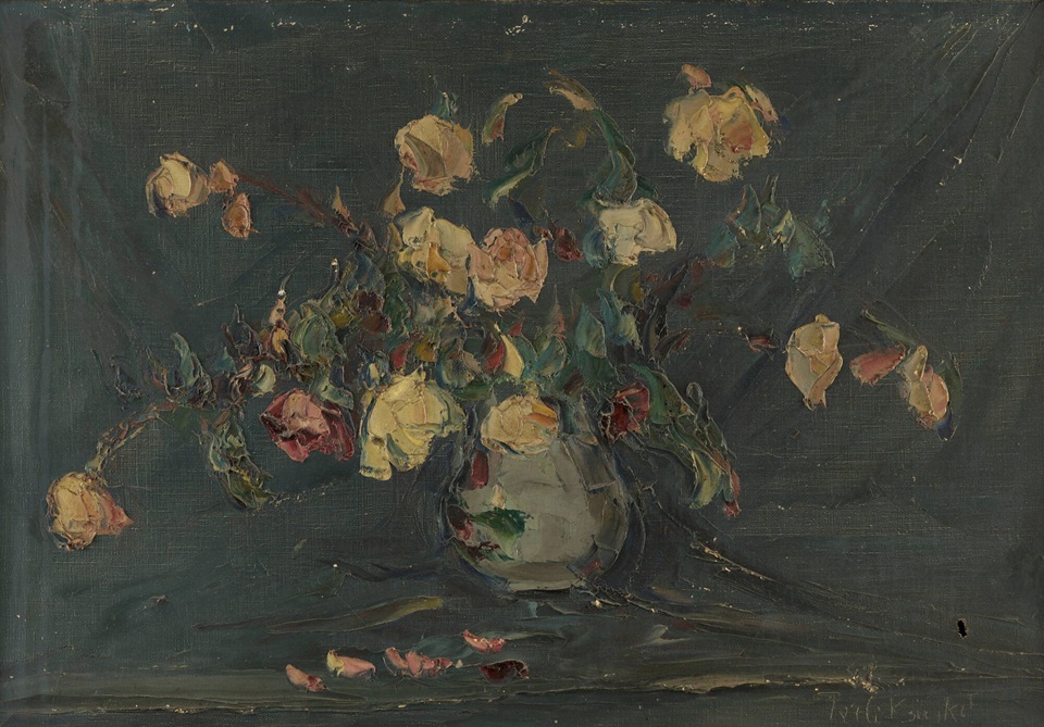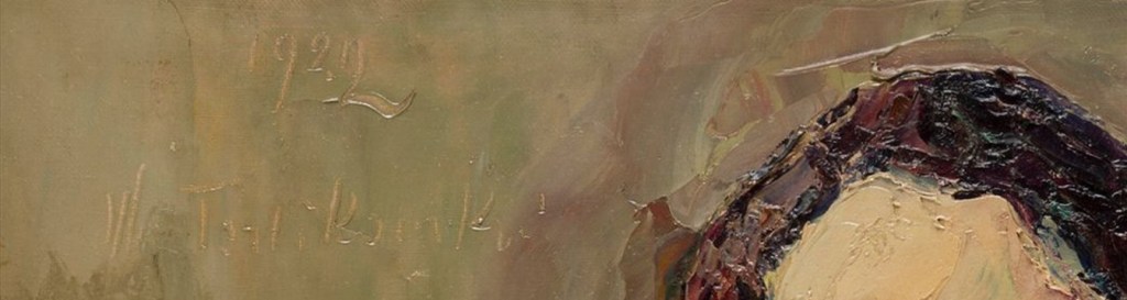 Wśród tych trzech prac Włodzimierza Terlikowskiego zasługuje na uwagę wczesna (1903) martwa natura z różą wystawiona we francuskiem Ader. Została namalowana pędzlem a nie szpachlą, którą artysta wprowadził z dużym sukcesem do swojego warsztatu ok 10 lat później. Warto powrócić do dwuczęściowego artykułu p. Krzysztofa Zagrodzkiego o tym artyście: https://polishartcorner.com/offside/ aby odświeżyć sobie wiedzę o Włodzimierzu Terlikowskim.