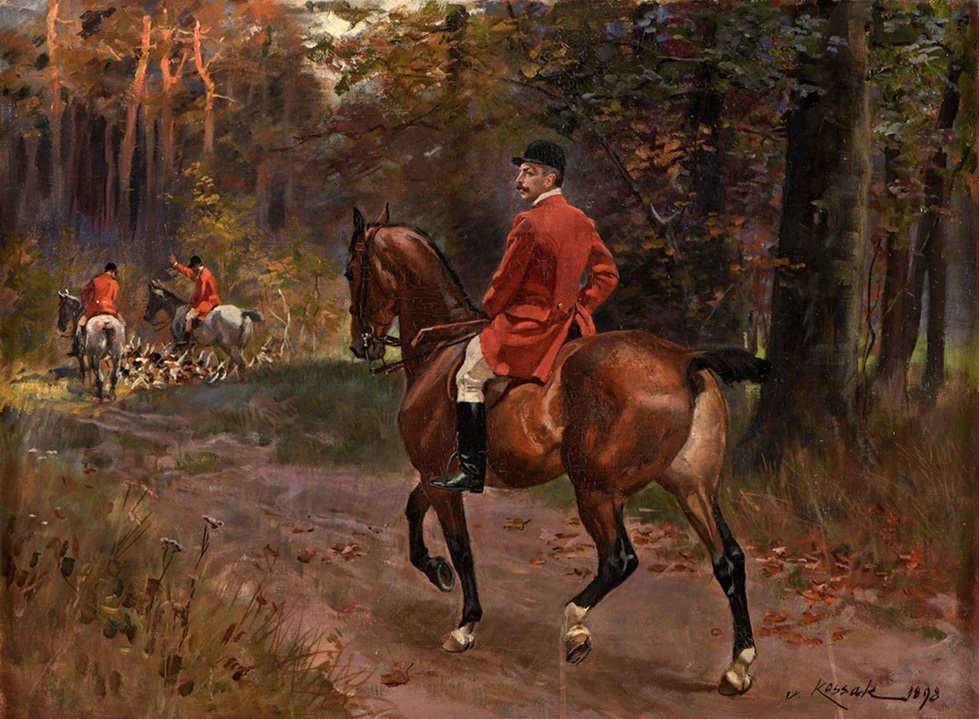 Lot 1510. Kossak, Wojciech von 1857 Paris – 1942 Krakau. Parforcereiter mit Meute. Signiert. Datiert 1898. Öl/Lwd., 43 x 58 cm. Opening €2,000. Dussldorfer Auktionshaus. 11/29/25