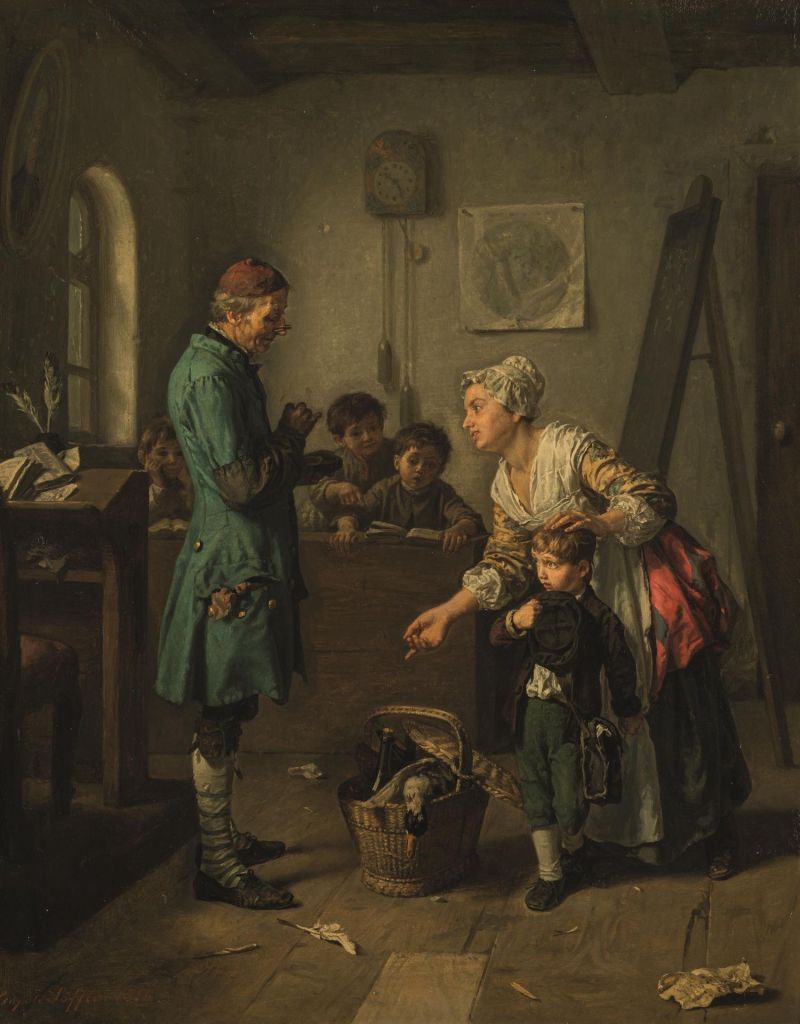 Lot 1079. Leopold Löffler-Radymno: First Day of School. Leopold Löffler-Radymno First Day of School 1856 oil on canvas; framed 58,5 x 46 cm Signed and dated on the lower left: Leopold Löffler 1856 Dorotheum Vienna, 22.9.1970, no. 68, plate 54 (b./w.-illus.); Austrian private property since the 1970s. Estimate €1,500 – 3,000. ImKinsky. 12/02/25. Sold €3,200