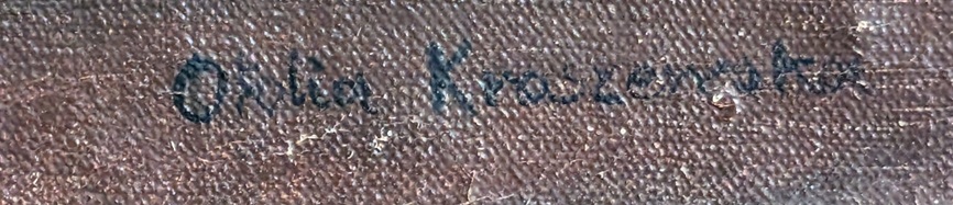 Martwa natura Otolii Kraszewskiej ze znakomitym światłem padającym na bukiet kwatów umieszczonych w dekoracyjnym wazonie stojącym na talerzu. Piękna praca uczennicy Ajwazowskiego. Rynek bardzo umiarkowanie ocenił ten sentymentalny olej mogący stanowić dekorację tradycyjnego salonu.