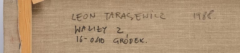 Ot 1678791. Leon Tarasewicz (Poland, Born 1957). Untitled. Signed Leon Trasewicz and dated 1988 verso. Oil on canvas 130 x 170 cm. Wear along the outer edges. Minor surface stains. Minor craquelure. Contact a specialist for a detailed condition report. Provenance: Galerie Nordenhake, Stockholm. Estimate SEK 200,000. Bukowskis. 11/28/25