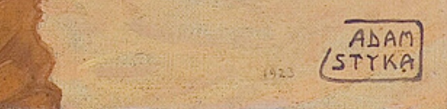 Nidawno opublikowany list od czytelnika na temat wątpliwego pastelu Wygrzywalskiego sprzedanego mu około pół roku temu w Dusseldorfer Auktionshaus skłonił mnie do dokładniejszego przyjrzenia się zestawowi poloników z obecnej aukcji. Wśród nich znajduje się olej Adama Styki przedstawiający dwa osiołki nad brzegiem Nilu(?). Ten obraz już kiedyś widziałem, zakodowałem w pamięci i to skłoniło mnie do przeszukania sieci. Na rynku, zwłaszcza polskim znajdują się czasami ‘duble’ prawdziwych prac Adama Styki o których wielokrotnie pisałem. Oleje Adama Styki są dość powszechnie fałszowane i pojawiają się zarówno na rynkach zachodnuich jak i polskich. Wracając do oleju w Dusseldorfie, niemal identyczny obraz był sprzedany na polskim rynku (fot i sygnatura poniżej). Wydaje mi się, że ten dolny obraz jest dobry a ten z Niemiec słabo mi wygląda. Nie wierzę, że tak dobry malarz jak Adam Styka kopiował czy replikował swoje prace. Tak mówią i idą w zaparte ci co się nabrali na zakup kopii i trwają przy swoim błędzie jak przysłowiowy krakowski marszand. Zachęcam do przyjrzenia się obu pracom i ewentualnej dyskusji. Podejmując decyzję o wzięciu udziału w aukcji w Dusseldorfer Auktionshaus należy pamietać, że zwrot pieniędzy jest, wg. listu czytelnika, praktycznie niemożliwy.
