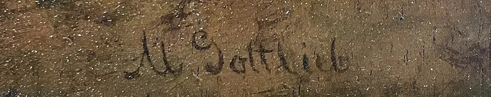 Lot 15. This fine 19th-century oil on panel painting is signed M. Gottlieb in the lower left, attributed to the renowned Polish-Jewish artist Maurycy Gottlieb (1856–1879) or a member of the talented Gottlieb family of painters. The work depicts a tender romantic genre scene featuring a couple in an embrace within a historic architectural courtyard. The artist demonstrates a masterful handling of light and shadow, characteristic of the Romantic Realism movement. The figures are dressed in traditional period attire, with the warm red of the woman’s skirt providing a focal point against the earthy, tonal palette of the stone surroundings. The painting is housed in a substantial, multi-tiered black Flemish-style frame with a gilded inner liner that enhances the depth and classical appeal of the composition. Dimensions: H: 24 in W: 21 in. Estimate $75,000 – 125,000. Williamson Auction Gallery. 01/15/26