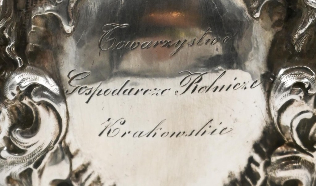 Pomyślałem, że któreś z krakowskich muzeów powinno być zaintersowane zakupem tego pysznego pucharu i informacje o tej aukcji zostały już wysłane na właściwe ręce. Patrząc na punce na pucharze, wygląda, że został on wykonany ze srebra ‘13’ w 1851 roku w Wiedniu (literka A na puncy) przez złotnika, któego nazwisko pewnie można odszukać. Puchar ma wymiar historyczny dla miasta Krakowa.