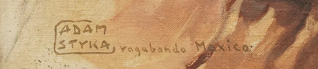 W okresie pobytu Adama Styki w Meksyku, okresie oczekiwania na amerykańską wizę pobytową, powstało wiele znakomitych jego obserwacji związanych z tym państwem. Jedną z nich jest bardzo plastyczny portret spalonego słońcem meksykańskiego włóczęgi. Wydaje mi się, że widziałem fotografię tego obrazu w jednej z książek o rodzinie Styków.