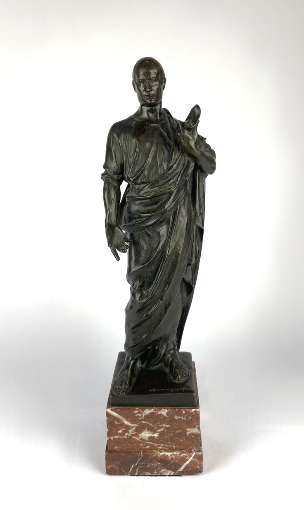 Lot 613. Stanislaw Lewandowski (Polish, 1859-1940), bronze sculpture ‘Roman Senator‘, on marble plinth base, combined height 44.5cm. Estimate £250 – £350. Henry Adams Fine Auctioneers. 01/29/26. Sold GBP 320