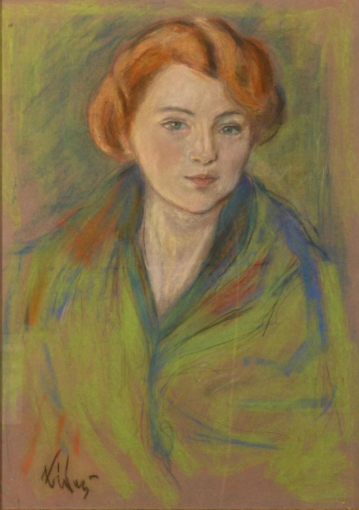 Lot 3279. KIDON, Józef (1890 – 1968). Portrait of a woman. Pastel. Signed lower left. 67 x 47 cm. Framed & behind glass : 75 x 56 cm (partly gold frame). Portrait of a young woman with red hair and in green clothing. Starting €240. Aukionshaus Wendl. 02/28/26
