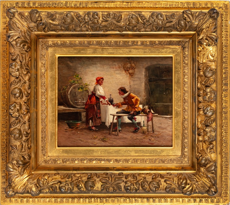 Lot 205. Władysław Wankie, (Polish, 1860-1925). Rest at the inn, signed ‘Wł. Wankie’ (lower right), oil on panel. Unframed: 18.5 x 23.5 cm. (7 1/4 x 9 1/4 in.) Framed: 40.5 x 45.5 cm. (16 x 17 7/8 in.). Provenance: Christie’s, London, 25 September 1997, lot 210. Estimate £200 – £300. Chiswick Auctions. 04/16/25