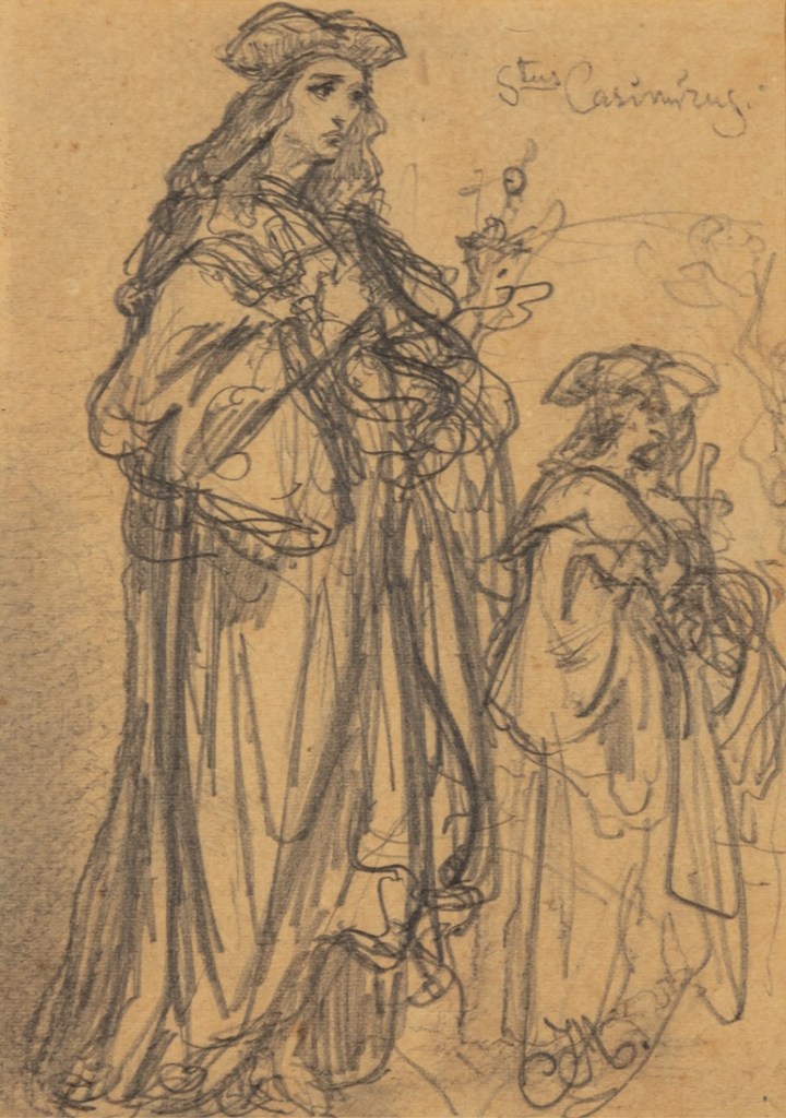Lot 103. Jan Matejko (Polish, 1838-1893). Saint Casimir, inscribed (upper right), pencil on buff paper. Unframed: 13 x 9 cm. (4 3/4 x 5 in.) Framed: 43 x 41 cm. (17 x 16 in.). Provenance: Private Collection, London. Estimate £3,000 – £5,000. Chiswick. 04/14/26