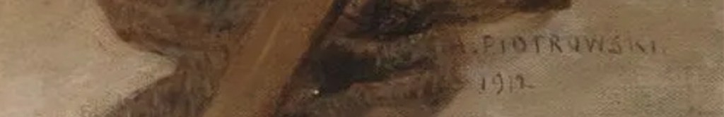 Do kanonu polskiego malarstwa ten obraz Antoniego Piotrowskiego na pewno nie wejdzie ale przechadzka nad brzegiem morza jest przyjemna i przewiewna. Warto zwrócić uwagę i stworzyć sobie internetową kolekcję prawdziwych nalepkek wystawowych różnych salonów/galerii bo i te są obecnie fałszowane.