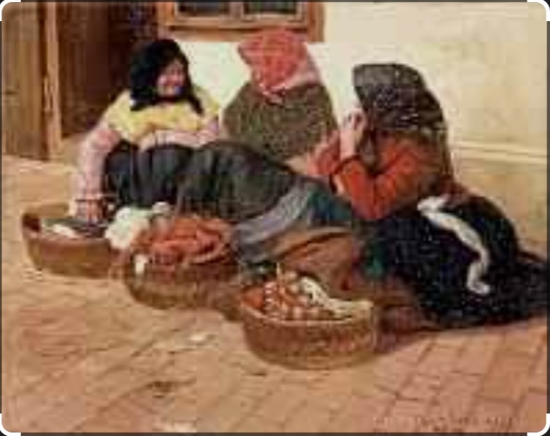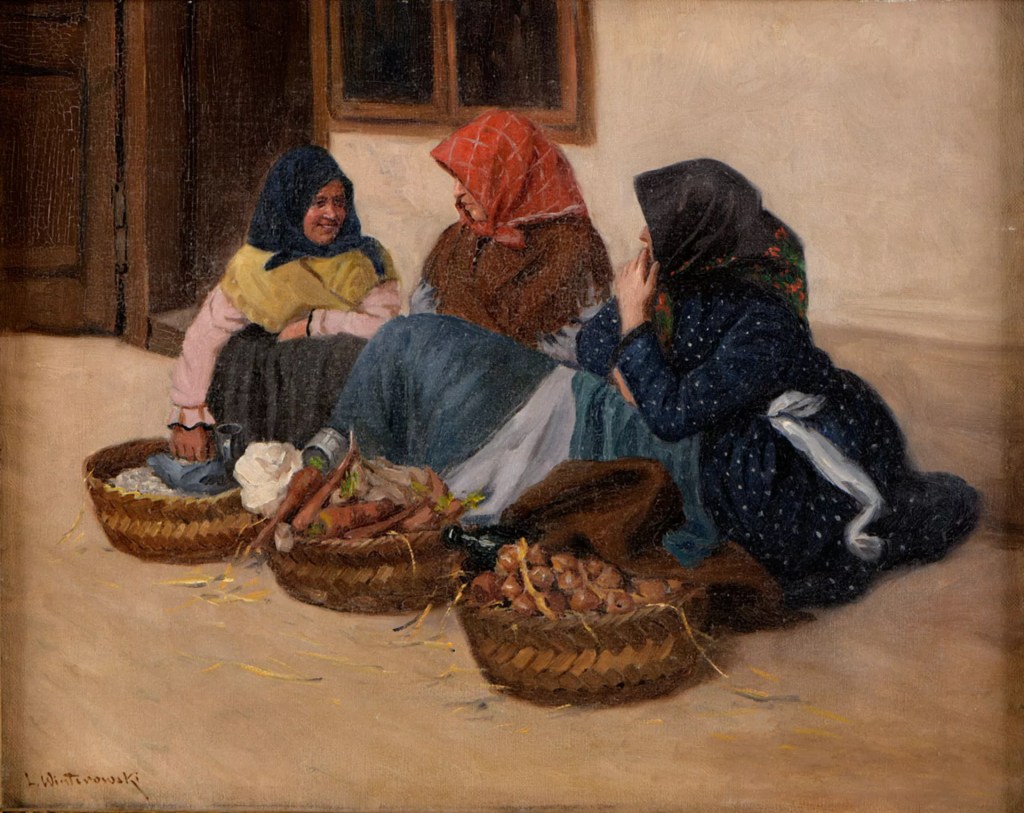 Do prac wątpliwych zaliczam obraz przypisany Leonardowi Winterowskiemu vel Wintorowskiemu przedstawiający trzy siedzące przekupki rozmawiające ze sobą, każda z koszem warzyw na sprzedaż. Wydaje mi się, że ten artysta nie zajmował się podobną tematyką, zupełnie inny miał pędzel i paletę….ale sygnatura na obrazie jest dość dobra. Przekupki, sądząc po strojach i chustach, nie wyglądają mi by pochodziły z polskich terenów (mogę się mylić). Podejrzewam, że może to być obraz węgielskiego malarza. Może o tym świadczyć dość słabej jakości fotografia oleju przypisanego węgierskiemu artyście o nazwisku Cserna Károly (1867 – 1944). Jego praca o identycznej kompozycji może uchodzić za pierwowzór pracy sygnowanej nazwiskiem Winterowskiego. Znane są również obrazy innych węgierskich malarzy o podobnej tematyce prac, właśnie z przekupkami mającymi niemal bliźniacze stroje i wiklinowe kosze.