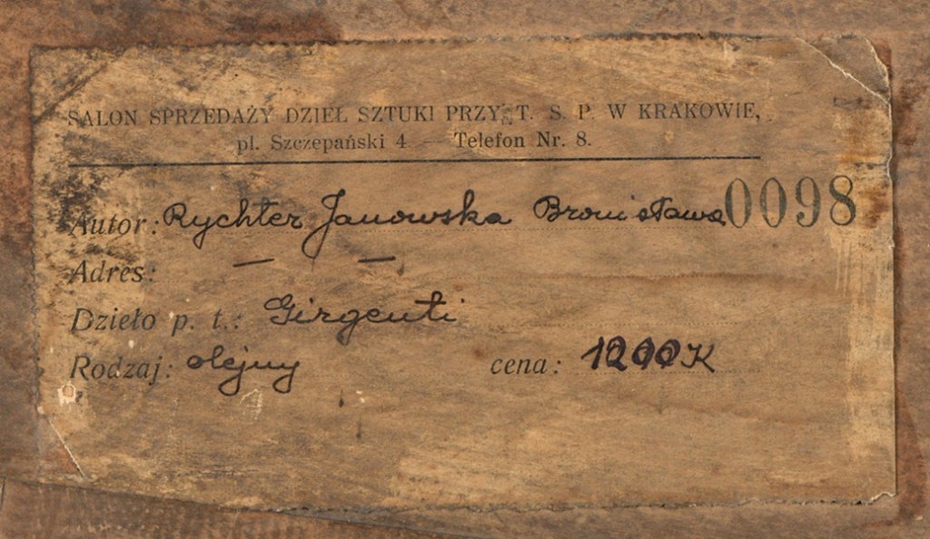 Obecnie obraz ten znalazł się w Dusseldorfer Auktionshaus z ceną wyjściową €500. Zapewne zostanie tam sprzedany lecz nie spodziewam się osiagnięcia optymistycznych widełek oferowanych w SDA. Ten bardzo ciekawy kolorystycznie wczesny obraz Bronisławy Rychter-Janowskiej został już dwukrotnie ‘spalony’ przez SDA, co bardzo źle wpływa na przyszłe jego losy aukcyjne. Jednym z wniosków jakie można wysnuć z tej i podobnych sytuacji jest unikanie hurra-optymistycznych obietnic niektórych polskich domów aukcyjnych i ich wycen. Wygląda na to, że okres w którym euforia licytacji na polskich aukcjach prowadziła do kolejnych rekordów należy już do przeszłości, czego jednym z przykładów jest właśnie ta praca.