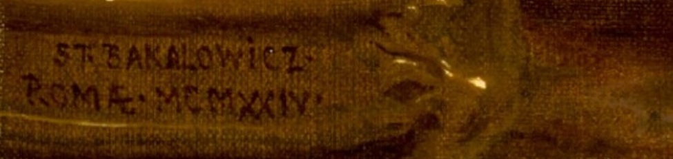 Lot 29. Stephan Vladislavovich Bakalowicz. Polish, 1857-1947. At Her Toilet, 1924. Signed and dated ST. BAKALOWICZ. / ROMAE. MCMXXIV. (ll). Oil on canvas, 18 x 14 1/4 inches (45.7 x 36.2 cm). Provenance: Private collection, New York, Estimate $6,000 – 8,000. Doyle. 04/21/26