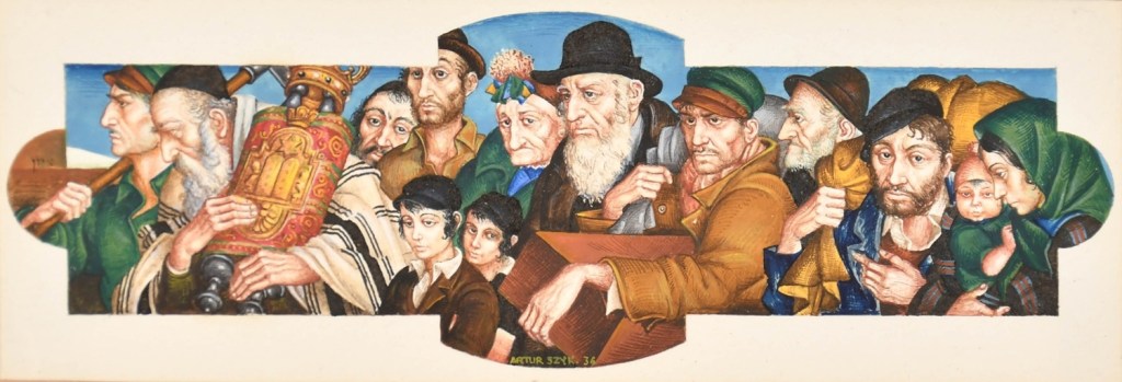 Nieduża ale jakże precyzyjna akwarela Artura Szyka z 1936 roku przedstawiająca różne typy żydowskie.
