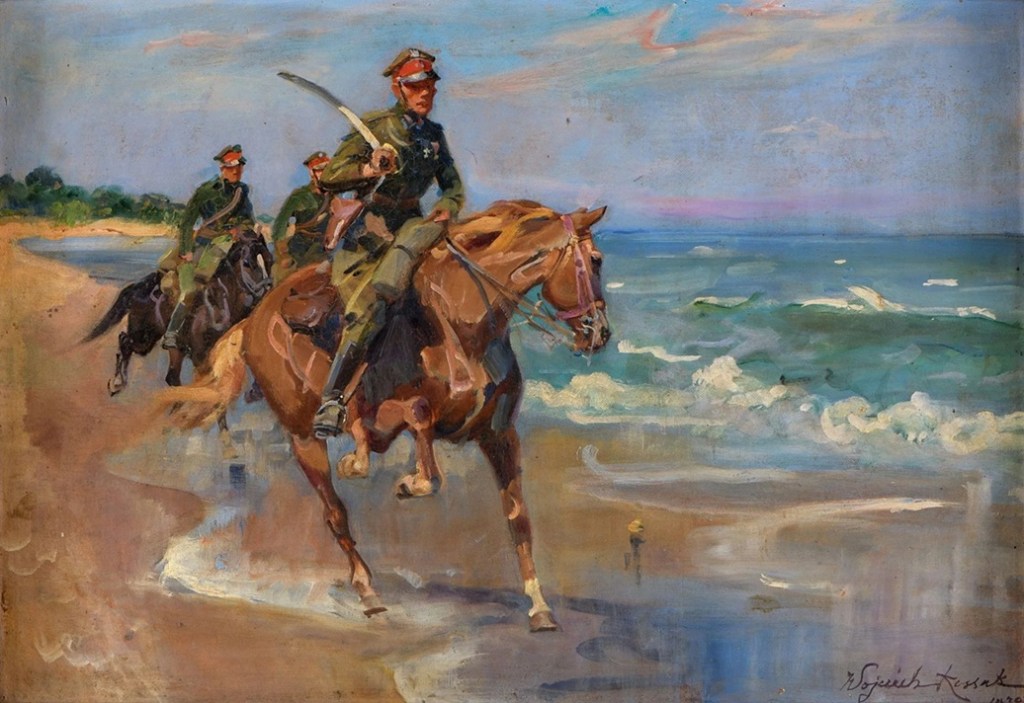 1205. Kossak, Wojciech 1857 Paris – 1942 Krakow. Polish cavalry on the Baltic Sea. Signed. Oil on canvas/painting, 50 x 70 cm. Wax seal on the reverse. Starting €1,000. Dusseldorfer Auktionshaus. 05/09/26