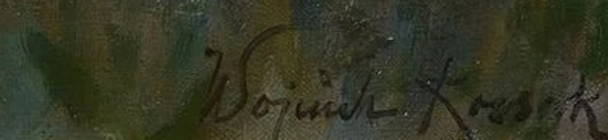 W sumie dziwi mnie ten zapał do przepłacania bo np. praca z okresu napoleońskiego z ułanem pykającym fajeczkę przy moście miała ogromną liczbę replik (sprzedana za €7,800). Słaba praca z polskim ułanem obłapiającym wiejską dziewczynę w pobliżu stogu siana (powyżej) na jedną zaletę o której pisałem, czyli nalepkę Jahody (obraz sprzedany za €7,000). Cieszy mnie obecność tego niezwykłego patriotyzmu wypływającego z obrazów Wojciecha Kossaka lecz czy będzie nadal trwało i oddziaływało na kolejne pokolenia, gdy obecne starsze pokolenie kolekcjonerów jego prac odejdzie?