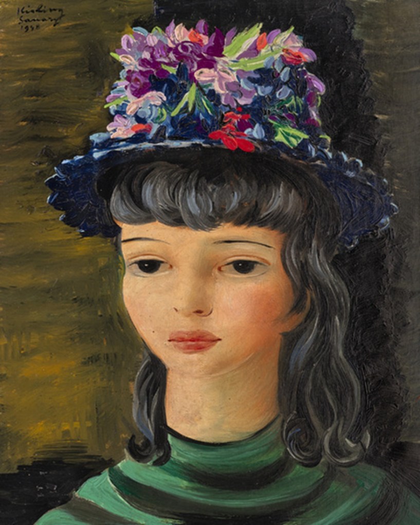 Mojżesz (Moise) Kisling. Jeune fille au chapeau fleuri, 1948
