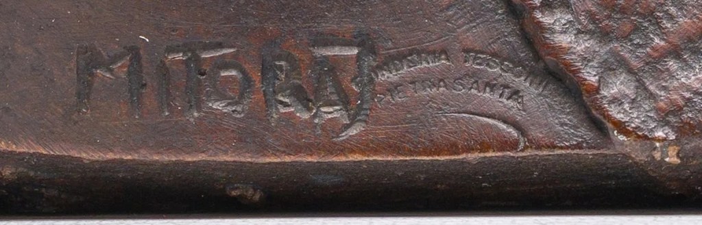 Zaskakuje byle-jako, po amatorsku, odciśnięta sygnatura “Mitoraj” na egzemplarzu z KDA, porównując do tej z egzemplarza wykonanego w odlewni włoskiej.
