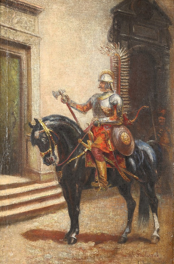 Wacław Pawliszak. Straż hetmańska, olej, płótno, 62×39 cm. Żródło: DA Artessia