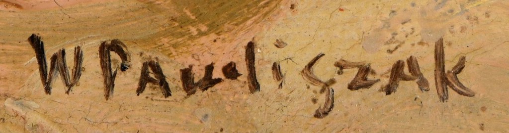 Zbiliża się termin aukcji w Dusseldorfer Auktionshaus, której ceny wyjściowe poloników napędzają wielu kolekcjonerów(?) gwałtownie szukających okazji. Ta interakcja z tym domem sukcyjnym może czasami źle się zakończyć o czym świadczy moja korespondencja z czytelnikiem próbującym odzyskać stamtąd pieniądze za nierozważnie kupiony i zapłacony ‘niekoszerny’ polonik. Niedawno pisałem o wątpliwym obrazie Winterowskiego z obecnego katalogu (https://polishartcorner.com/2026/04/07/leonard-winterowski-1868-1927-w-dusseldorfer-auktionshaus/). Obawiam się, że ta niemiecka firma ma coraz gorszych dostawców ‘towaru’ z Polski, którzy już bazują na niesprzedanej zawartości z Allegro. Obecnie będzie o obrazie Wacława Pawliszaka Husar. Już sama sygnatura wzbudza duży śmiech a reszta jest łatwa do odszukania.