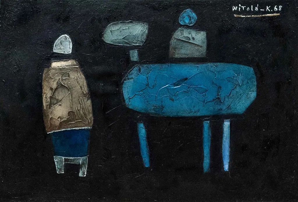 Samotność Witolda Kaczanowskiego pojawia się wielokrotnie na jego pracach w postaci skulonej, siedzącej postaci. Autor był człowiekiem światowym, towarzyskim, znał wielu możnych tego świata i dlatego zastanawia mnie ten ciągły motyw samotności na jego pracach.