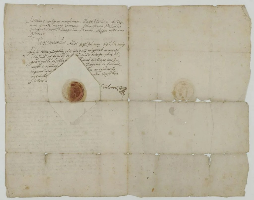 Lot 758. VASA JOHN ALBERT: (1612-1634) Polish Cardinal. Son of Sigismund III Vasa and Constance of Austria. Prince Bishop of Warmia and Krakow. Very rare L.S., `Joan Albertus Cardinalis´, one page, folio, Warsaw, 18th August 1633, to Apostolic Nuntio and Archbishop of Larissa Visconti, in Latin. A year before the present letter was written the King of Poland Sigismund III passed away and his elder son Wladyslaw IV, and brother of John Albert, was crowned King of Poland. John Albert thanks his correspondent `Most Illustrious and Reverend and appreciated friend, your singular letters so benevolent towards us..´ and refers to sad news about some individual in Lithuania, to their work to finish and to Lithuanians. With address leaf, bearing a paper seal affixed. Overall age wear and staining. Professionally repaired. F to G John Albert Vasa died at the very early age of 22 in Padua Italy. He was sent by his brother and King of Poland Wladyslaw IV on a diplomatic mission. The cause of his death remains uncertain. International Autograph Auctions Europe S.L. 07/16/21