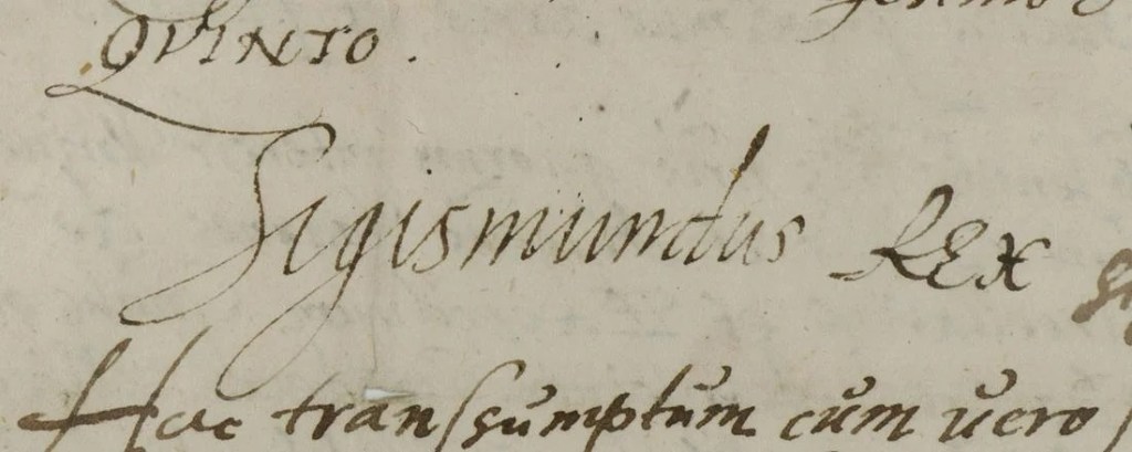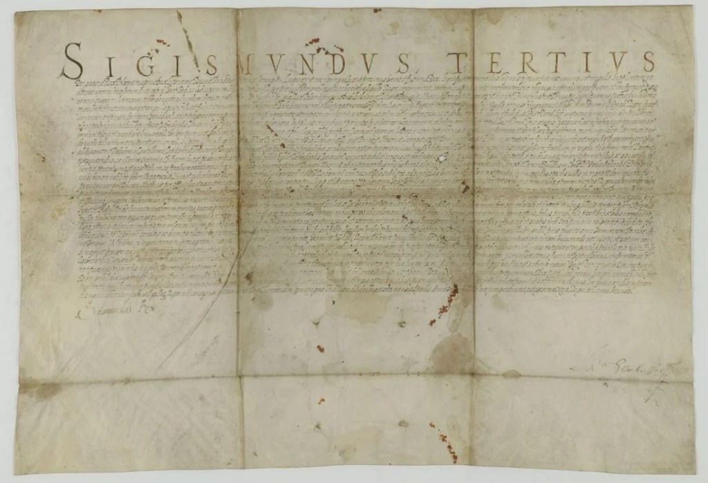 Lot 784. RARE KING SIGISMUND III VASA OF POLAND DOCUMENT. Comprising a large signed vellum document in Latin, the upper margin inscribed SIGISMUNDUS TERTIUS above a lengthy inscription, untranslated, dated 1589 (second year of his reign), signed at left Sigismundus Rex. 14.25 inches x 20.5 inches (36 x 52 cm). Scarce. Estimate $250 – 500. Jackson’s Auction. 06/24/20. Sold $1,800 (hammer)