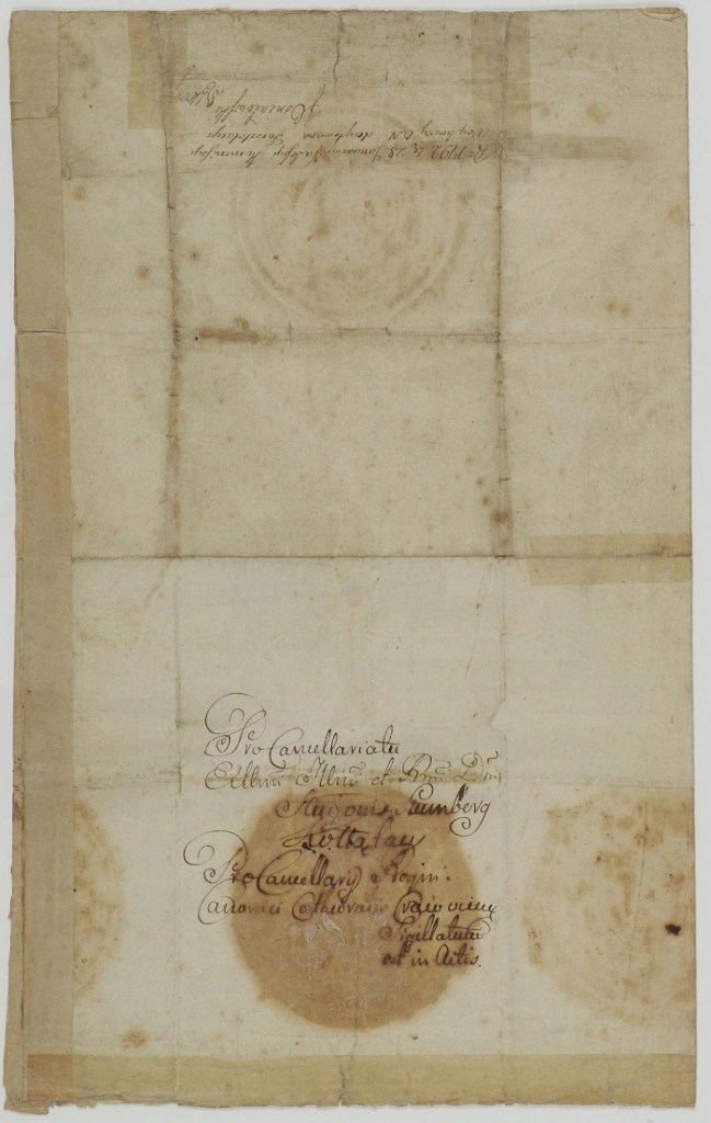 Manuscrit in-plano (75 x 60 cm) sur vélin, cordelettes et sceau de cire.