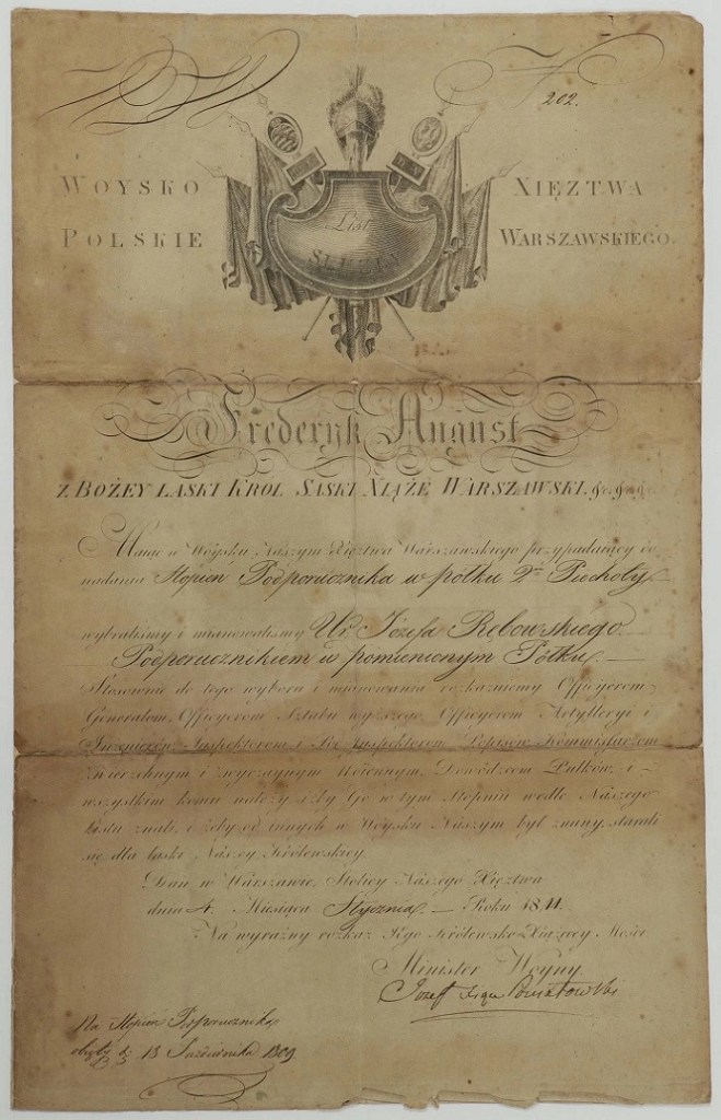Lot 785. JOZEF PONIATOWSKI SIGNED DOCUMENT. The partially printed double sheet document in Polish, untranslated, dated 1811, and being an appointment to the rank of Lieutenant Colonel to a Jozef Rebowski, boldly signed as Minister of War. 17.25 inches x 11 inches (44 x 28 cm). Estimate $250 – 500. Jackson’s Auction. 06/24/20. Sold $1,600 (hammer)