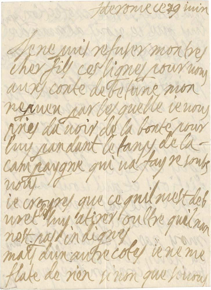 “Madame On ne scauroit estre plus sensible que je suisre au souvenir que vous me temoignons a l’occasion du plus heureux évenement de ma vie le transport de ma joye ne me empêcher pas de goutter le plaisir que me donne la part que vous prenez a ce qui interesse Celuy qui est tres parfaitement vostre bien affectioné “… Estimate 500 – 600 euro. Ader. 10/07/20