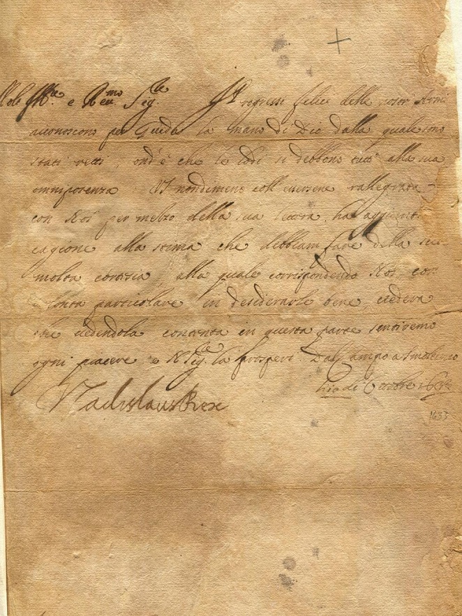 lot 760. WLADYSLAW IV VASA: (1595-1648) King of Poland 1632-48. A renowned Patron of the Arts. Wladyslaw gained fame when he defeated the Ottoman Empire and was elected Tsar of Russia by the Seven Boyars in 1610, although he did not accept the Russian throne. Rare L.S., `Vladislaus Rex´, one page, 4to, Vilnius, 10th October 1633, to Monsignor Archbishop of Larissa, in Italian. The King of Poland sends a friendly letter, referring to his correspondent´s letter and sending his best wishes. Bearing the Wladyslaw attractive Royal paper seal affixed to the verso of the address leaf, in very fine condition. The letter has been professionally reinforced to the verso. Overall age wear and staining, with edges trimmed. F to G. International Autograph Auctions Europe S.L. 07/16/21