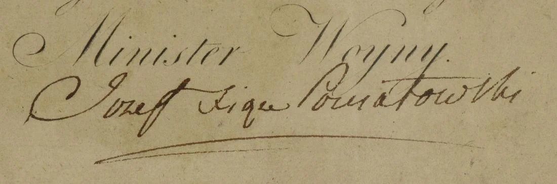 Lot 785. JOZEF PONIATOWSKI SIGNED DOCUMENT. The partially printed double sheet document in Polish, untranslated, dated 1811, and being an appointment to the rank of Lieutenant Colonel to a Jozef Rebowski, boldly signed as Minister of War. 17.25 inches x 11 inches (44 x 28 cm). Estimate $250 – 500. Jackson’s Auction. 06/24/20. Sold $1,600 (hammer)