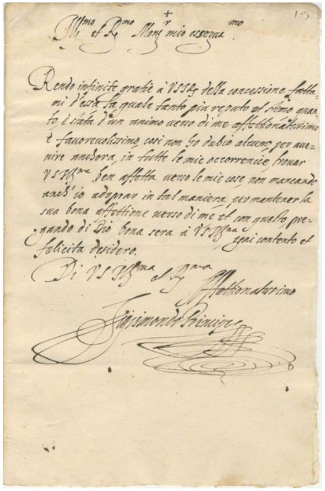 Lot 803. SIGISMOND PRINCE OF TRANSYLVANIA: (1573-1613) Also known as Sigismund Bathory. As a child he succeeded his father as Voivode or ruler of Transylvania. Sigismond abdicated in favour of Holy Roman Emperor Rudolf II, and although he returned to his pillaged territories in 1601 with a Polish army, he could not strengthen his position and settled in Poland. In 1605, Holy Roman Emperor and Spanish King Philip III tried to persuade him to return and claim Transylvania, but he refused. He would later be accused of conspiracy and imprisoned by Rudolf II. Rare L.S., `Sigismond Principe´, a bold large and attractive signature with large flourish beneath, one page, folio, n.p, n.d., [1595], in Italian. The letter is addressed to Cardinal Alphonso Vicecometi, and states in part `I send my infinite gratitude to Y.S.S.R for the concession granted to me and which I esteem so much… I have no doubt about your affection towards myself and all matters related to me, and I will not miss the opportunity to prove my affection.. I pray God for you and wish happiness..´ With blank integral leaf. Edges very slightly trimmed, otherwise about VG. Estimate 1,000 – 1,500 euro. International Autographs. 12/03/20