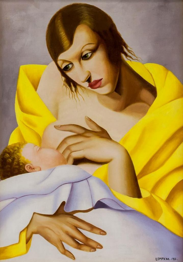 Lot 91. Oil on canvas, framed. Featuring potrait of woman in yellow nursing an infant. Signed Lempicka. 1955. in bottom right corner. Attributed to Tamara de Lempicka (1898-1980, Polish). 68 x 48 cm (26.8 x 18.9 inches). PROVENANCE: This lot carries limited provenance from a Private Toronto collection. Estimate $2,000 – 4,000. 888 Auctions. 03/12/20