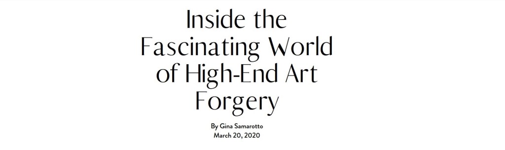 Króciutki artykuł z roku 2019 o fałszerstwach na polskim rynku sztuki wspominający o technikach fałszowania. Artykuł na internetowym portalu “Rynek i Sztuka“.