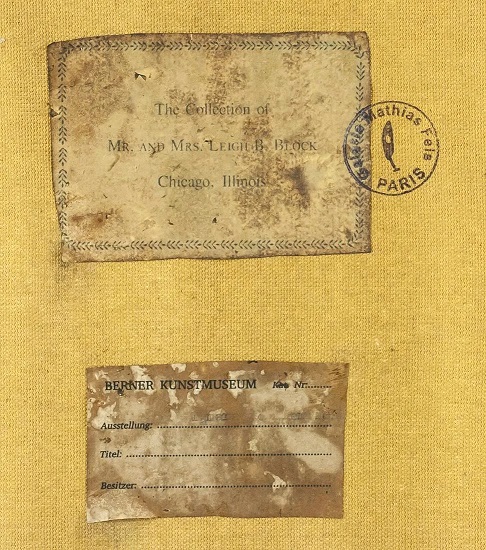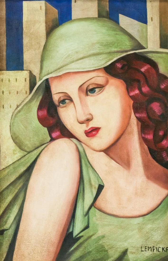 Lot 65. Tamara de Lempicka Polish OOC Berner Kunstmuseum. Oil on canvas, framed. Featuring portrait of a red-haired woman in a green dress and matching hat. Signed “Lempicka” in the bottom right corner. Stamped with “Musee d’Orsay Paris Francis” on verso. Label affixed to verso reads “The Collection of MR. AND MRS. LEIGH B BLOCK Chicago. Illinois”. Stamped with “Galerie Mathias Fels Paris”. Label affixed to verso reads “BERNER KUNSTMUSEUM Nr…. Ausstellung:…. Titel:…. Besitzer:…..” Stamped with “MUSEO THYSSEN – BORNEMISZA” on verso. Attributed to Tamara de Lempicka (1898-1980, Polish). 60 x 39 cm (23.5 x 15.5 inches). Framed size: 74 x 54 cm (29 x 21 inches). PROVENANCE: This lot carries limited provenance from a Southern Ontario estate. Estimate $2,000 – 4,000. 888 Auctions (Canada). 03/26/20