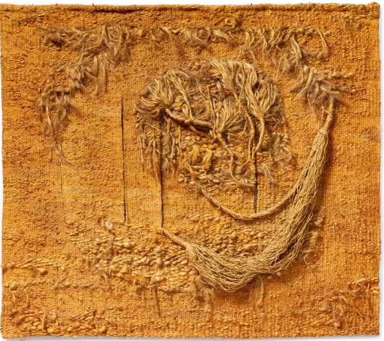 Lot 214. Magdalena Abakanowicz 1930 – 2017. Gold II, signed twice, titled, inscribed and dated 1981 (on the reverse), woven tapestry; 176 x 200 cm; 69 ¼ x 78 ¾ in. Executed in 1981. Estimate €80,000 – 120,000. Sotheby’s. 04/11/25. Sold €65,000