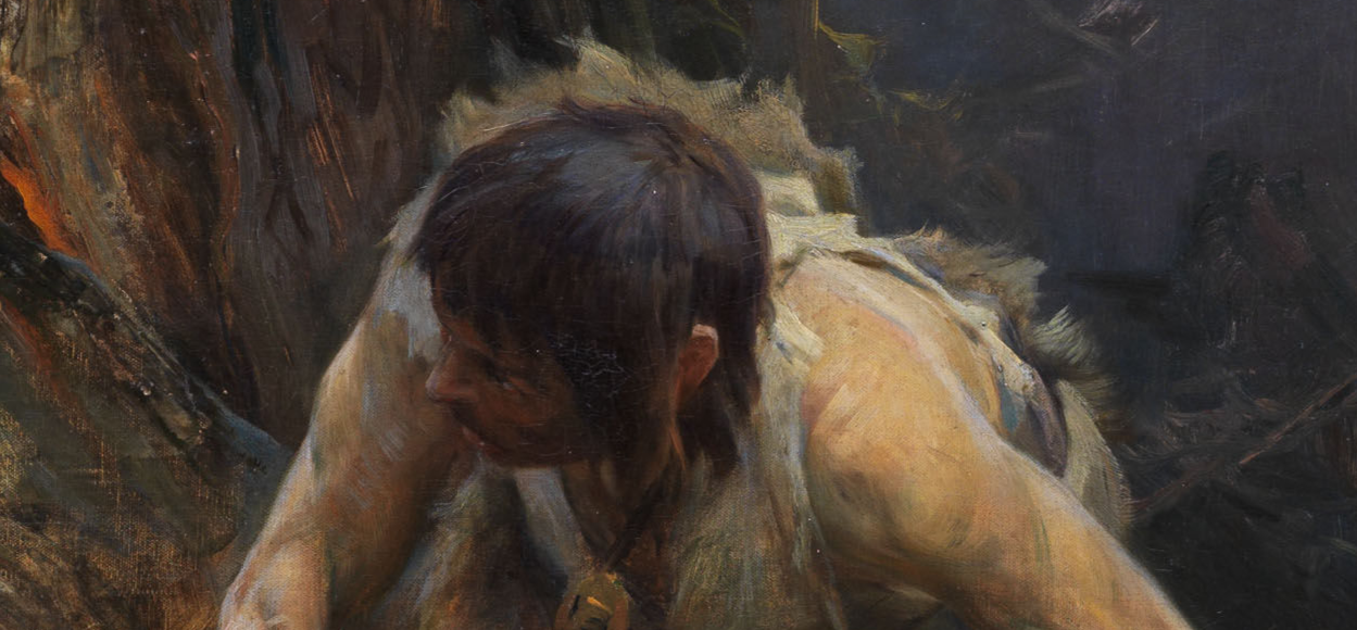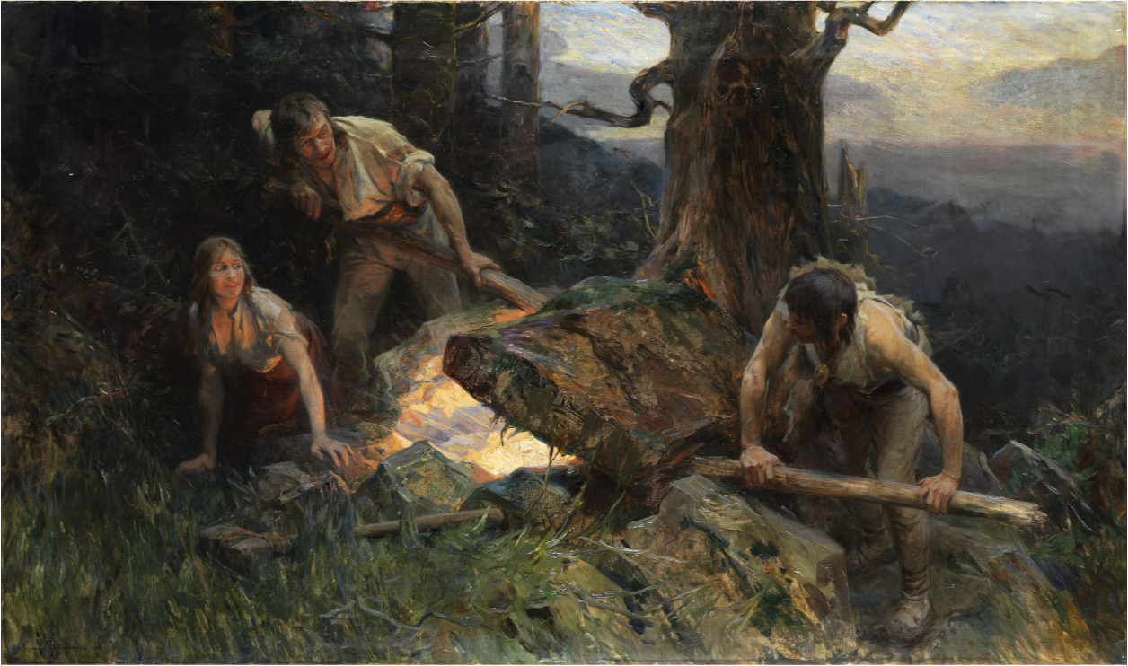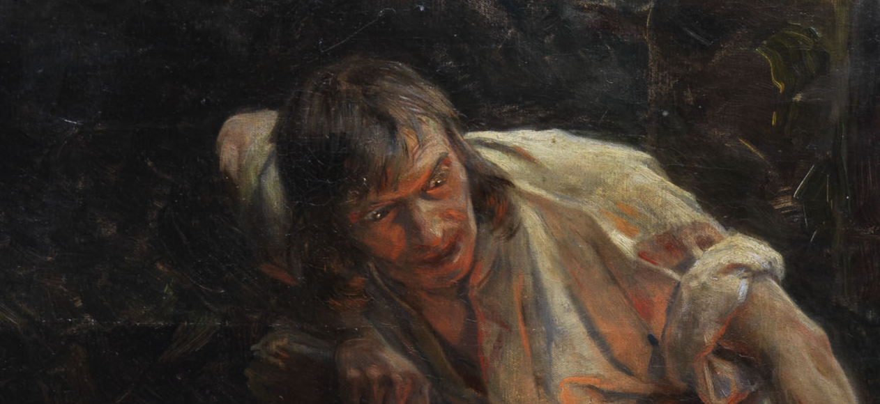 Der polnische Maler war ein Cousin des Malers Tadeusz Ajdukiewicz. Er studierte zunächst an der Wiener Akademie und dann anschließend in München, lebte und arbeitete aber ab 1885 wieder in Wien. DER SCHATZ IST GEFUNDEN Öl auf Leinwand. 95 x 162 cm. Links unten signiert und datiert „1902“.