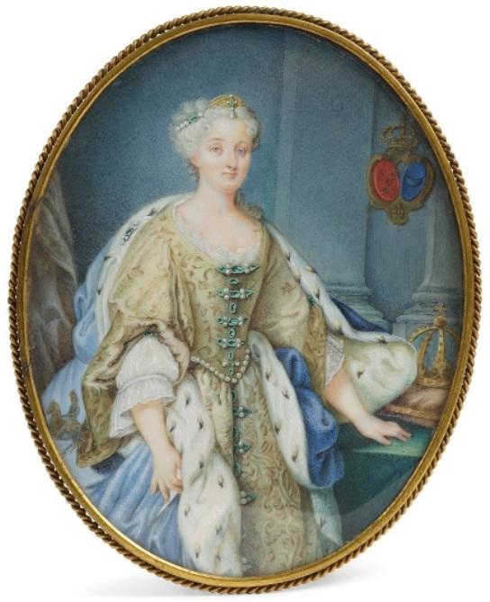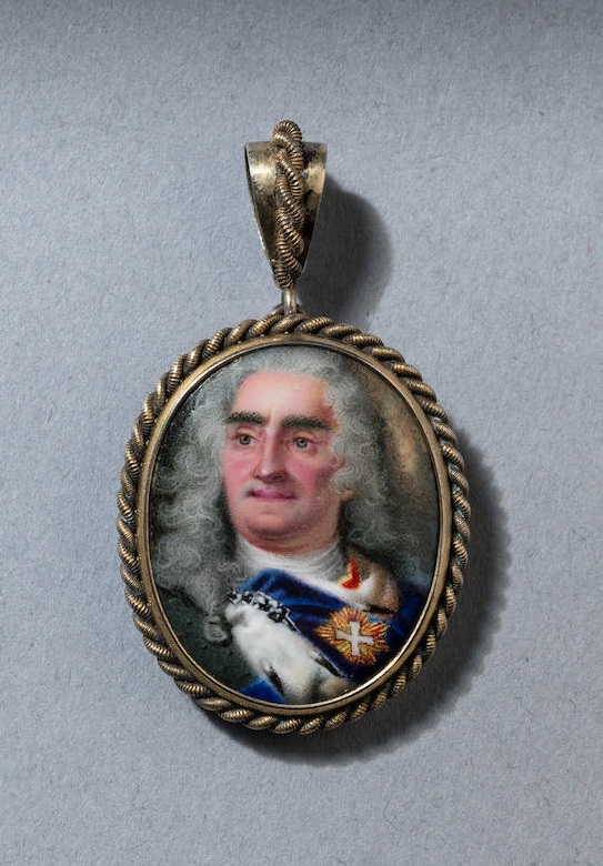 Brustbildnis des sächsischen Kurfürsten August I. von Sachsen, genannt “der Starke”, als König von Polen-Litauen August II. (1670-1733), Darstellung des Herrschers mit üppiger Allongeperücke in Rüstung und Hermelinmantel mit dem Orden vom Goldenen Vlies und der Schärpe und dem Bruststern des Ordens vom Weißen Adler vor dunklem Grund, das Gemälde entspricht voll und ganz dem Typus eines barocken, absolutistischen Herrscherportraits, es geht zurück auf ein großformatiges Ganzfigurenbildnis von der Hand Louis de Silvestres aus dem Jahre 1723, “König August II. von Polen mit Diener und Negerknaben”, das in Varianten mehrfach existiert und das den Herrscher, in voller Rüstung und mit Marschallstab in der rechten Hand, vor weiter Landschaft mit Kavallerie zeigt, der vorliegende Ausschnitt aus besagtem Gemälde konzentriert sich unter Weglassung von Staffagefiguren und Hintergrundlandschaft gänzlich auf das Antlitz des Regenten, dieses Bildnis August des Starken prägte, neben einigen wenigen anderen Bildnissen von Louis de Silvestre, maßgeblich die heute geläufige visuelle Überlieferung vom Aussehen des sächsischen Kurfürsten und polnisch-litauischen Königs, dabei ist der Detailtreue de Silvestres durchaus zu vertrauen, so ist durch eine erhalten gebliebene Quittung belegt, dass sich Silvestre Rüstungen vom sächsischen Hof auslieh – um typisch für die Zeit – die Robe des Herrschers so genau als irgend möglich wiederzugeben, um schließlich das Gesicht nach authentischen Gemälden bzw. bei einer Portraitsitzung ins vorbereitete Gemälde einzufügen, 1733 vermerkt also besagte Quittung “Daß auf Sr. Königl. Hoheit des Churfürsten zu Sachsen … allergnädigsten Befehl … von der Churfürstl. Sächs. Rüst Cammer alhier, Ein blanck eiserner Streiffen weise geetzter und etwas vergoldeter Frey Tournier Curass, als Rück- und Brust-Stücke, Ringkragen, Armzeuge … um einige Portraits danach zu mahlen, dato richtig verabfolget worden … (an) Louis Silvestre”, dabei passt die Beschreibung der entliehenen Objekte durchaus auf die in unserem Gemälde wiedergegebenen Rüstungsteile, wenngleich auch Louis de Silvestre das vorliegende Motiv direkt oder modifiziert auf Grund der großen Nachfrage als Kanzleibild mehrfach eigenhändig ausgeführt haben wird, dürfte es sich bei unserem Gemälde, wie uns Prof. Dr. Harald Marx (langjähriger Direktor der Staatlichen Galerie Alte Meister Dresden und Autor einer profunden Monographie zu Louis des Silvestre) nach Inaugenscheinnahme unseres Gemäldes freundlichst bestätigte, um eine Werkstattarbeit nach Silvestre handeln, hierfür spricht unter anderem die fehlende Detailtiefe und solide, doch routinierte Ausführung der Malerei, welche die sonst gewohnte malerische Handschrift Louis de Silvestres und die direkte Anschauung des Modells vermissen lässt, Prof. Marx führt in seiner Monographie unter Katalognr. 12-17 mehrere Portraits August des Starken von der Hand Louis de Silvestres, seiner Werkstatt und späterer Kopisten an, wobei in Katalognummer 15 die Vorlage für unser Gemälde erkennbar ist und unter 16a und 16b unserem Gemälde ähnliche Kopien vorgestellt werden, auch das Museum Burg Stolpen zeigt ein nicht autorisiertes Gemälde des Sächsischen Kurfürsten mit unserem Motiv, weitere Varianten finden sich unter anderem in St. Petersburg, als Kopisten unseres Gemäldes kommen engste Familienmitglieder des Künstlers in Frage, so schreibt Prof. Marx: “Im Atelier Silvestres scheint auch beinahe seine ganze Familie beschäftigt gewesen zu sein. Das liegt ja nahe, wenn wir daran denken, daß Silvestre, wie auch seine Frau Marie-Catherine, aus großen Pariser Künstlerfamilien stammten, wo es schon Tradition war, daß die Kinder den Beruf des Vaters, oder doch einen ganz verwandten Beruf ergriffen. So hören wir von Silvestres Frau, daß sie Kopien nach den Werken ihres Mannes verfertigt habe. Sein Sohn François Charles wurde nach dem Weggang des Vaters Direktor der alten Dresdener Malerakademie und von seiner Tochter Marie schreibt (Roger Armand) Weigert: “Marie von Silvestre, die Tochter des Künstlers, … könnte genauso an der Serienproduktion von Kopien nach Bildnissen August II. und August III. teilgenommen haben.””, effektvolle, lasierende, teils minimal pastose Bildnismalerei, Öl auf Leinwand, wohl unsigniert, der Künstler signierte eigenhändige Werke bzw. Werkstattarbeiten mit hohem Eigenanteil meist auf der Rückseite, auf Grund der vorliegenden Doublierung des Gemäldes kann die Frage nach einer etwaigen Signatur auf der Gemälderückseite nicht beantwortet werden, Craquelure, gering restauriert, in alter Leiste gerahmt, Falzmaß ca. 82 x 64 cm, wir danken Prof. Dr. Harald Marx für die freundlichen Hinweise zum Gemälde. Werkstatt des Louis de Silvestre in Dresden: Louis Silvestre (1675 Sceaux bis 1760 Paris), 1741 durch König August III. geadelt und Louis de Silvestre genannt, Ausbildung bei seinem Vater Israël Silvestre, später bei Charles Le Brun und Bon Boullogne an der Königlichen Akademie Paris und auf Studienreisen nach Rom (hier Förderung durch Carlo Maratti) und nach Venedig, 1716 auf Einladung des sächsischen Kurfürsten Übersiedlung nach Dresden, hier zunächst “Erster Maler des Königs” und nach dem Tod von Heinrich Christoph Fehling (1654-1725) zum Oberhofmaler ernannt, 1727 Ernennung zum Direktor der Dresdner Malerakademie, schuf in Dresden, wo er bis 1748 weilte, zahlreiche Gemälde und Innendekorationen für August den Starken, seinen Sohn August II., den Grafen Brühl und den sächsischen Hochadel, um das enorme Arbeitspensum zu meistern, unterhielt Louis de Silvestre einen umfangreichen Werkstattbetrieb, dem unter anderen seine künstlerisch ausgebildete Ehefrau Marie-Catherine geborene Hérault (1780-1743), seine Tochter Marie-Maximilienne (1708-1797), sein Sohn François Charles (1712-1780) und wohl auch zumindest zeitweise Adam Friedrich Oeser (1717-1799) un