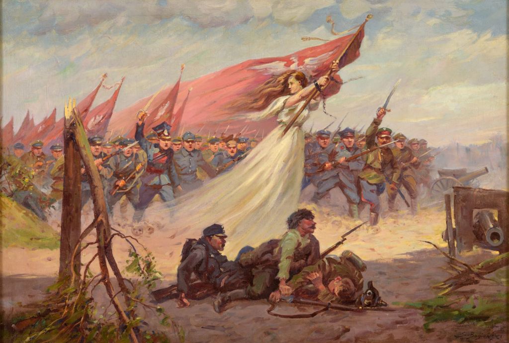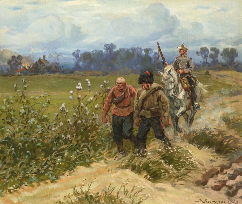 Znakomity batalista oraz pierwca polskiego żołnierza. Obraz z aukcji, Ranny ułan, jest bardzo czytelny i warty zakupu, duży i dekoracyjny obraz.