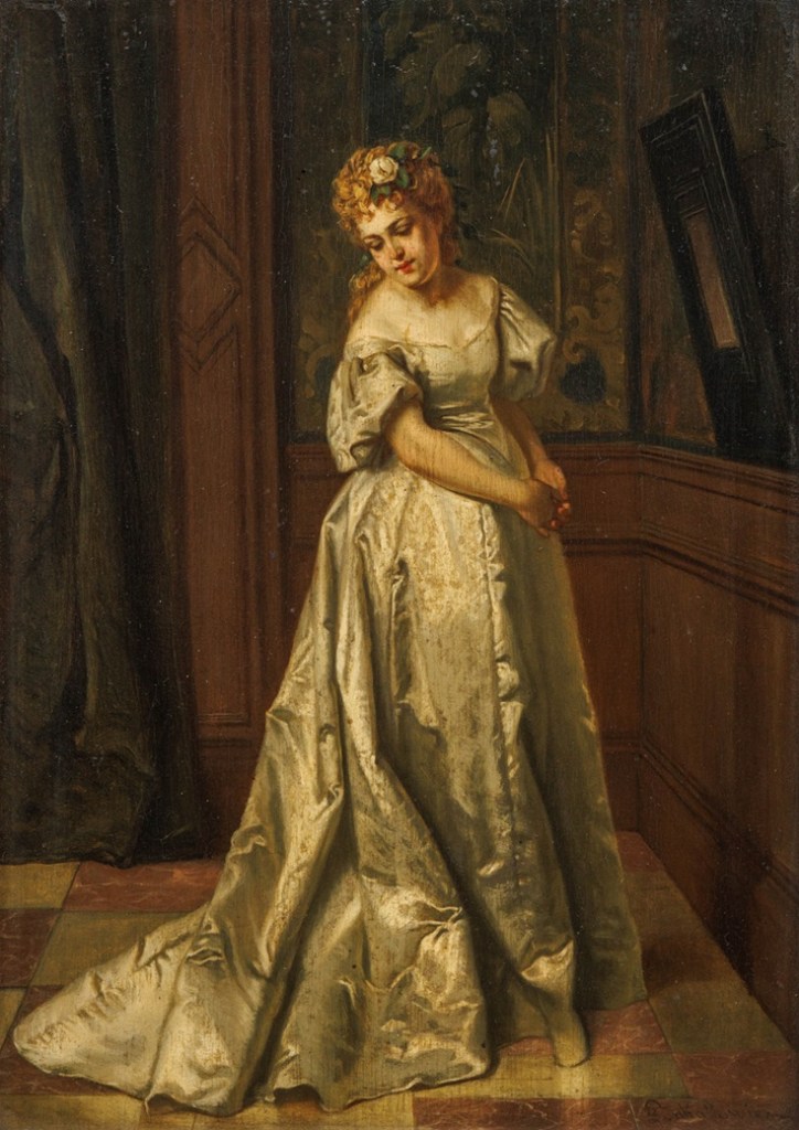 Lot 133. Ladislas BAKALOWICZ (1833-1903). Lady of the Court. OIL ON PANEL. Signed upper left 55.5 x 39.5 cm (traces of frame on edge). No frame. Estimate 800 – 1,500 euro. Azur Encheres. 10/22/24