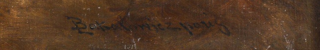 Te dwa nieduże oleje odbiegają pędzlem od podobnych Pań eleganckich wykonanych przez Władysława Bakałowicza. Podobnie, sygnatury na obu pracach różnią się od tych na innych jego obrazach prezentowanych m.in. na blogu. Widząc te różnice tłumaczę je tym, że mogą to być jedne z pierwszych prac tego typu wykonanych przez artystę we Francji. Ta moja hipoteza może być jednak nieprawdziwa bo obu prac nie sprzedano a licytacja od wyściowych 2,000 euro była w dół a nie w górę i nie było chętnych do kupna nawet za 1,500 euro.