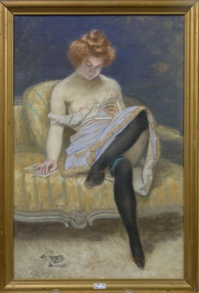 Lot 127. BAKALOWICZ Ladislaus (1833 1903). “Jeune femme à la lecture” pastel sur papier. Signé en bas à gauche L. Bakalowicz. Ecole polonaise. Dim.:57,5x38cm. Estimate 1,400 – 1,800 euro. Vanderkindere. 11/12/19