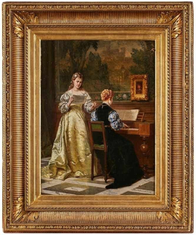 Lot 101. Gemälde Ladislaus Bakalowicz 1831 Chrzanów – 1904 Paris “Musikstunde” u. re. sign. u. bez. Bakalowicz Paris Öl/Holz, 55 x 42 cm. Estimate 5,800 euro. Kunst- und Auktionshaus Wilhelm M. Döbritz. 03/14/20